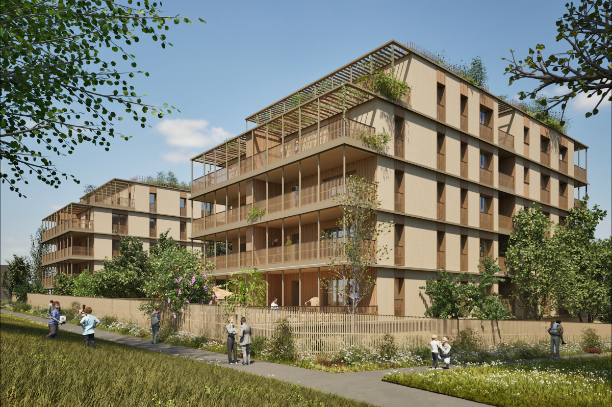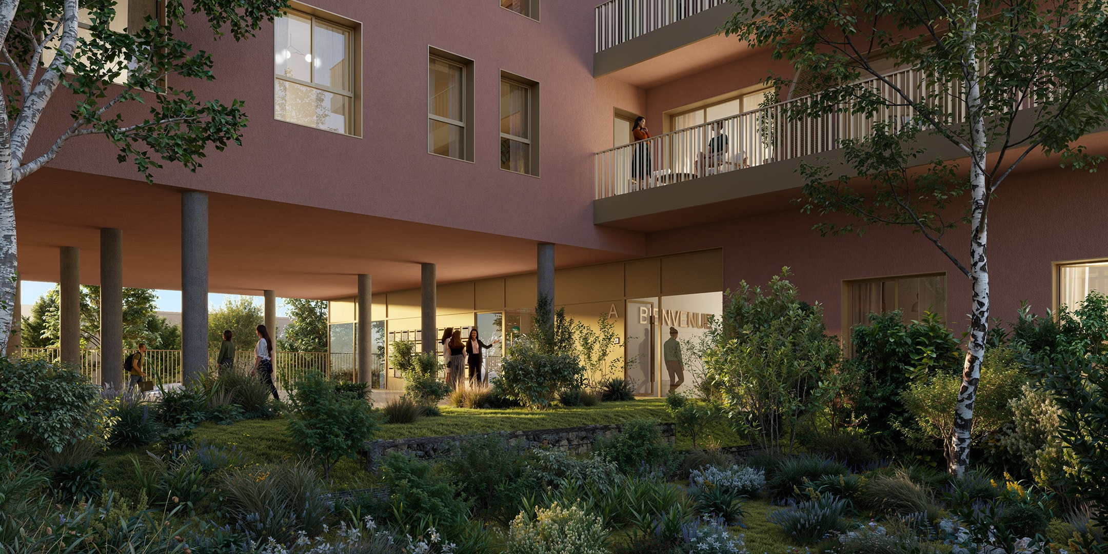 Illustration non contractuelle - Rooj by GA est une marque de la société GA SAS, portée par la filiale GA Immobilier Résidentiel, société par action simplifiée au capital de 8 103 225 €, immatriculée au registre du commerce et des sociétés (RCS) de Toulouse sous le numéro 922 556 279 dont le siège social est sis 33, piste des Géants - 31400 Toulouse (France). Architectes : Hamonic + Masson & Associés et CoBe.